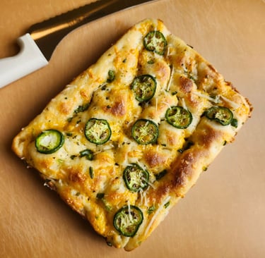 Every week we release a fresh specialty focaccia made in small batches with bold, fun flavors. Think Jalapeño Cheddar, Salami Swiss, Pumpkin Spice, and other surprise creations that rotate in and out. These limited flavors are here for a short time, so check back often to see what is coming out of the oven next. Check out Instagram for available flavors each day.