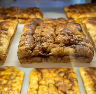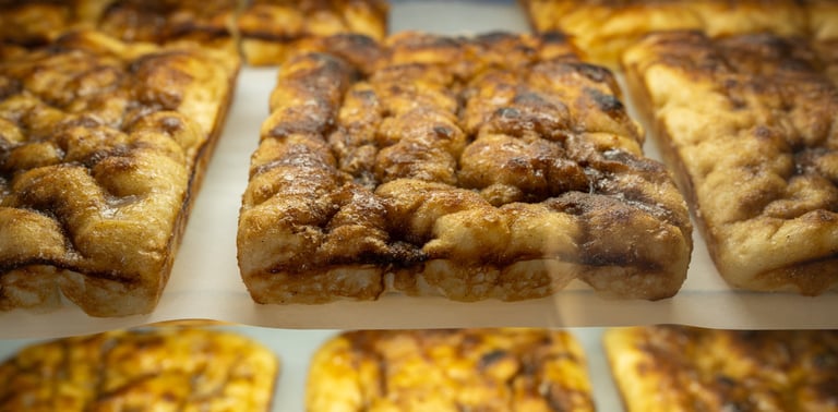 A soft, fresh baked focaccia with warm cinnamon throughout. Light, tender, and naturally dairy free. It has a gentle sweetness and a cozy aroma that makes every bite feel warm and comforting. Perfect for anytime you want something simple and delicious.
