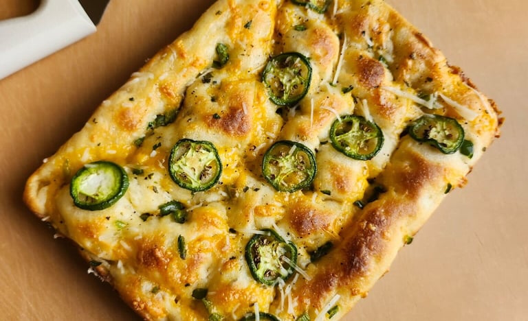 The jalapeno cheddar focaccia from fkosh is my new favorite—perfectly spicy with a soft, chewy crumb every time.